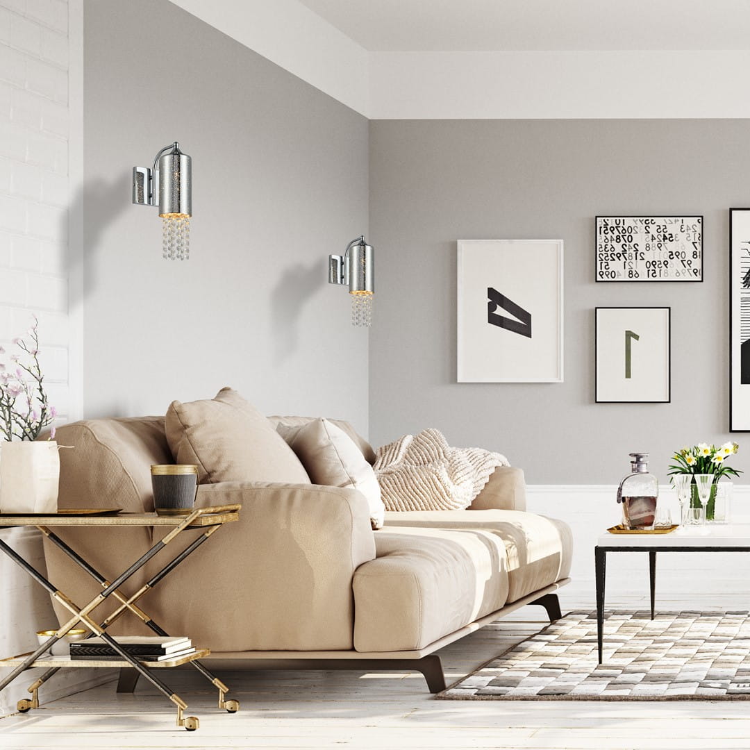 Klosze wykonane są z elementów metalowych, szklanych oraz kryształów. W ofercie lamp znaleźć można kinkiet i wiszące lampy sufitowe jednym oraz z trzema punktami światła.