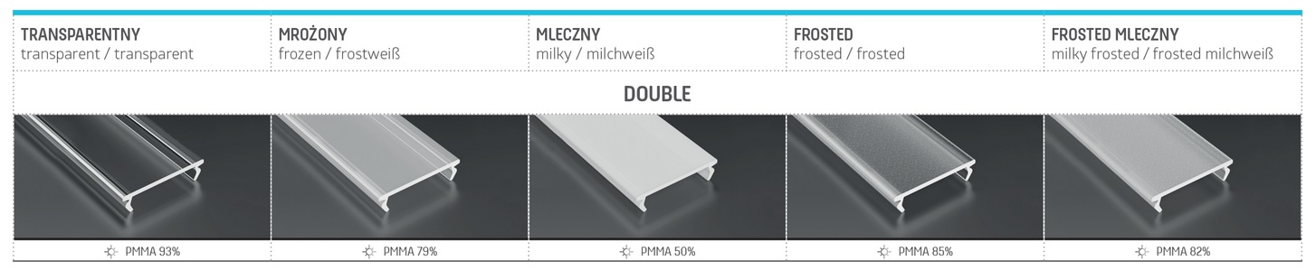- mleczny - biała przesłonka - wnętrze profilu jest niewidoczne, bardzo dobrze rozprasza punkty świetlne,
