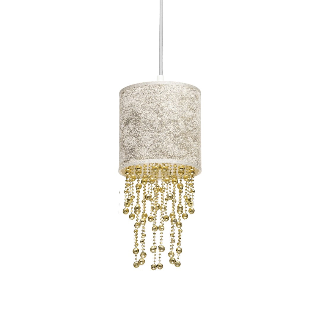 Modele z tej kolekcji charakteryzują się prostym, materiałowym kloszem w kształcie walca, jednak zwisające z jego wnętrza różnej długości sznury korali sprawiają, że całość prezentuje się niezwykle stylowo. Łańcuszki te mają jednak nie tylko walor estetyczny – dzięki nim światło efektownie się rozprasza i wprowadza w pomieszczeniu bardzo przytulny nastrój. Dodatkowym atutem lamp z tej kolekcji jest ogromna różnorodność kolorystyczna. Do wyboru są modele z kryształkami w kolorze złota i srebra, a klosze występują w barwie czarno-złotej, biało-złotej, butelkowej zieleni i srebra.