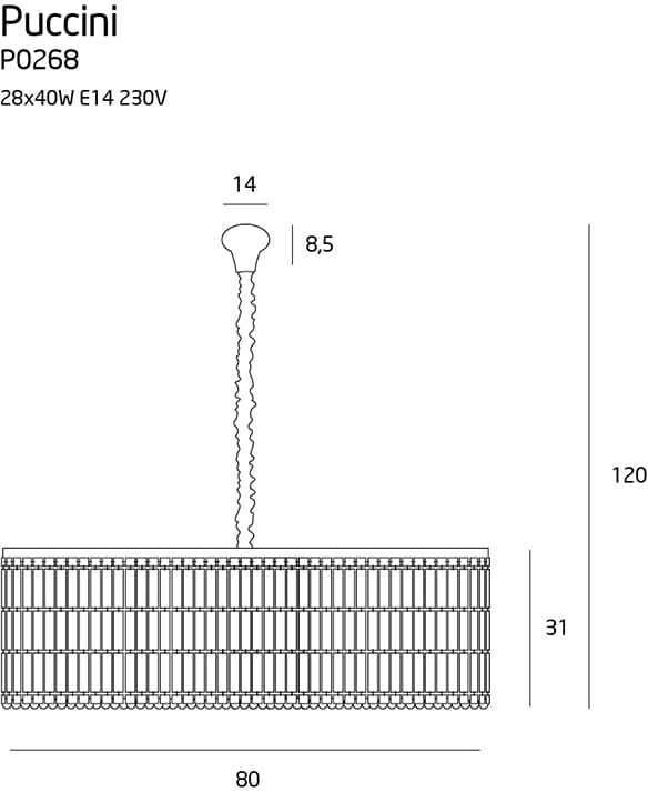 Jeśli szukasz oprawy z klasą, która przyciąga oko i tworzy atmosferę elegancji i luksusu, zwróć uwagę na rodzinę lamp Puccini. Bezlik niewielkich kryształów rozszczepia światło, przywodząc na myśl setkę kieliszków szampana wzniesionych w toaście. Dostępnych jest sześć modeli: trzy plafoniery oraz trzy lampy wiszące. Największe z nich mają aż 80 cm średnicy i mogą stać się znaczącym elementem dekoracyjnym w salonie czy hotelowym lobby, a najmniejsze, o średnicy 40 cm, równie pięknie oświetlą i ozdobią także niewielkie przestrzenie – sypialnię, restauracyjny stolik, hotelowy pokój czy korytarz. Puccini będzie świetnie pasować do wnętrz, które niezależnie od rozmiarów potrzebują iskrzenia kryształów, blichtru i blasku, a przy tym dużej ilości światła przyjemnego dla oczu.