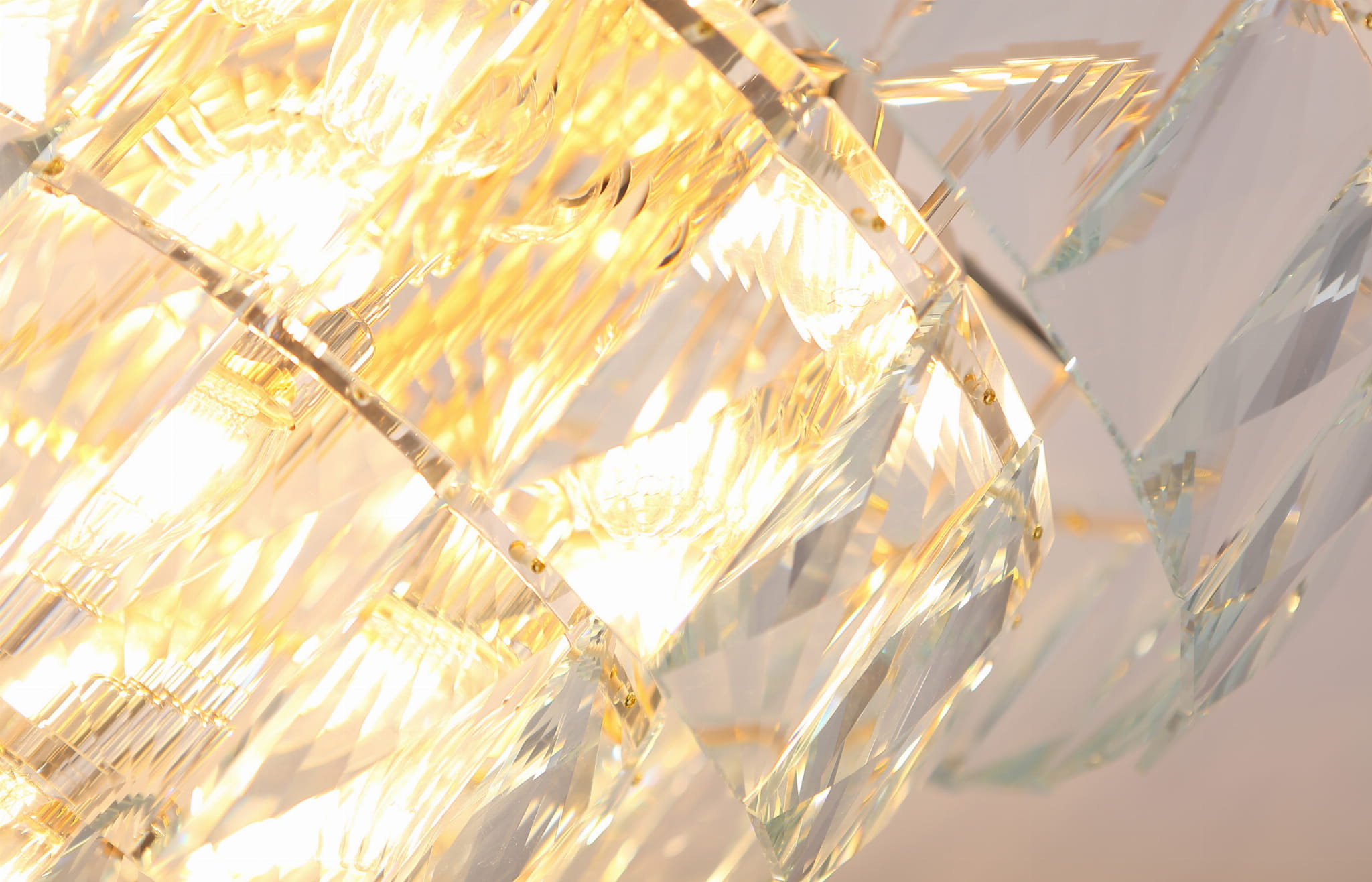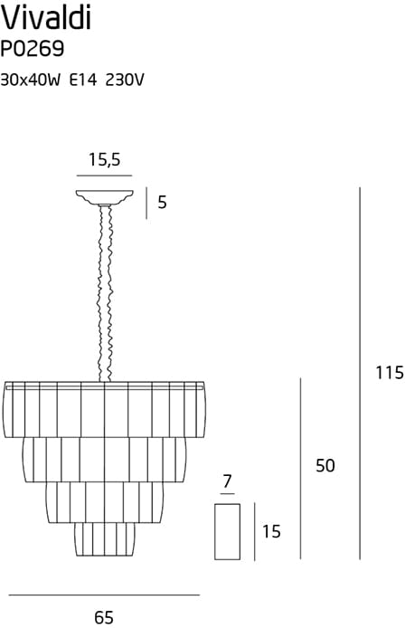 Ta elegancka lampa, stworzona z zaokrąglonych i kunsztownie ciętych szklanych płytek, przytwierdzonych do ledwie widocznej, metalowej ramy, jest jednocześnie wyrafinowana i bezpretensjonalna. Dzięki swojej przezroczystej formie zapewnia dużą ilość światła, które załamane przez szkło nie razi, ale zachwyca przepięknymi refleksami. Oprawa Vivaldi doskonale komponuje się z wnętrzami urządzonymi z klasą, które wymagają dobrego oświetlenia. Jest wspaniałą dekoracją salonu, sypialni, holu czy hotelowego lobby.