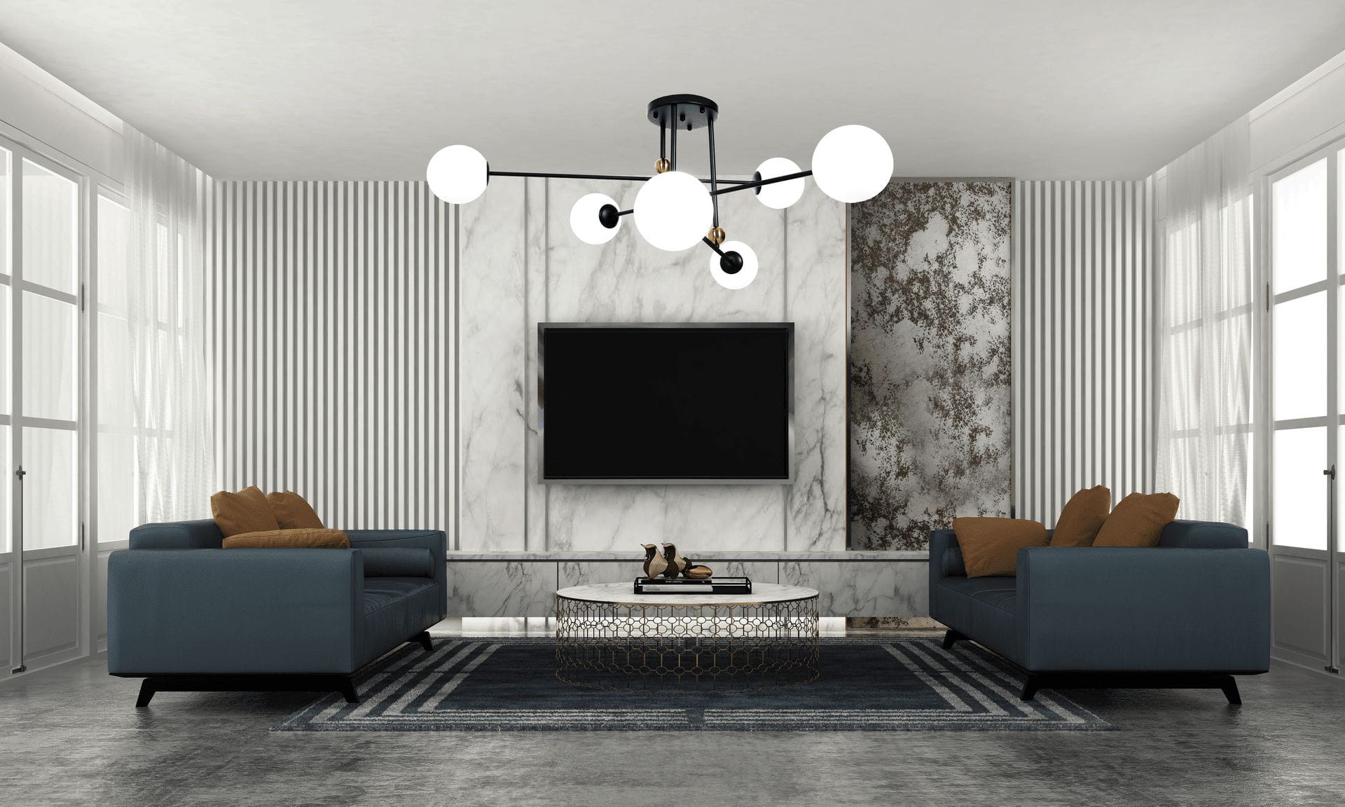 Metalowo - szklana propozycja nad wyraz nowoczesnego oświetlenia sprawdzi się z pewnością w reprezentacyjnej części domu i mieszkania, czyli w pokoju dziennym czy kuchni. Awangardowy kształt lampy wiszącej BERSAGO W6 doskonale skomponował się z jej mosiężną oprawą dodającą ciepła i elegancji sześciu stonowanym, białym kloszom.