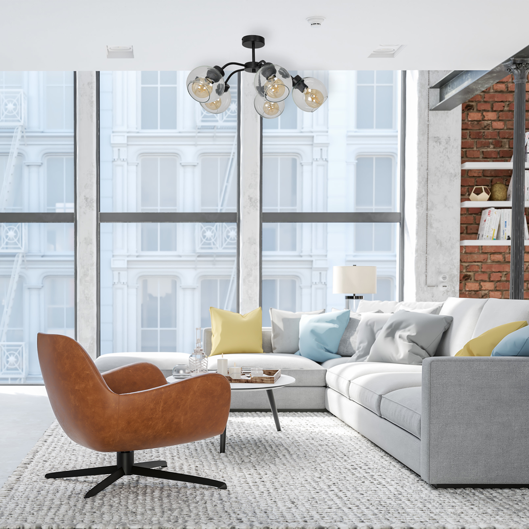 lampa sufitowa z pięcioma ramionami źródeł światła transparentna, przydymiona, bursztynowa MLP6596, MLP6597, MLP6598