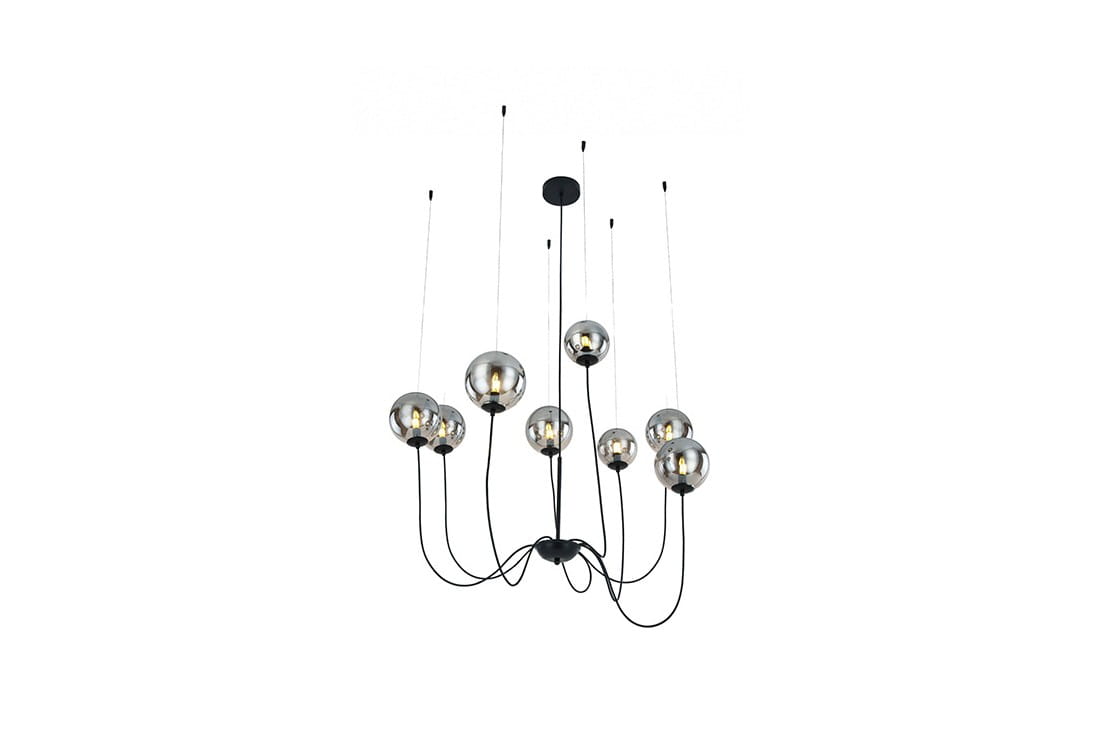 Lampa składa się z ośmiu źródeł światła schowanych w kulistych szklanych kloszach w odcieniu chromu, podwieszonych na żyłkach do sufitu. Całość sprawia wrażenie, jakby osłony unosiły się w powietrzu. Poniżej nich zwieszają się w dekoracyjnych girlandach właściwe przewody, połączone w centralnej części. Elementy konstrukcyjne wykonano z trwałego metalu w kolorze czarnym.