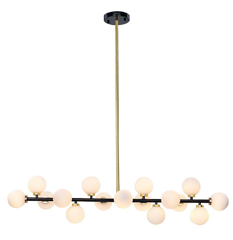 Lampy z kolekcji Cosmo wykonane zostały z połączenia metalu w czarnym, satynowym kolorze, złotych dekorów i szklanych kulistych kloszy.