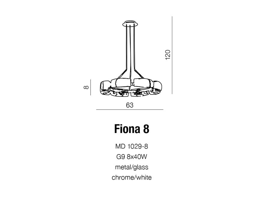 Lampa Fiona 8 wykonana jest z chromowanego metalu oraz białego szkła.