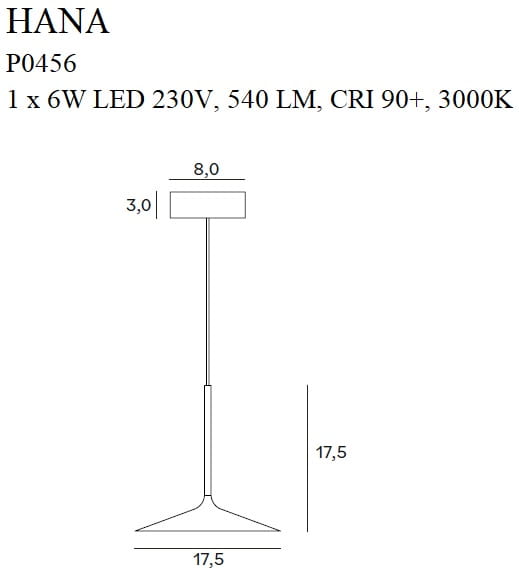 Moc/Power: 1 x 6W LED 230V, 540 LM, CRI 90+, 3000K