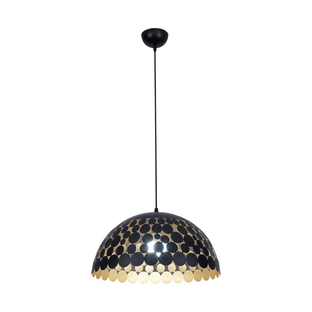 • Lampa sufitowa wisząca z jednym źródłem światła i kloszem o średnicy 40 cm, czarno-złota ML6134