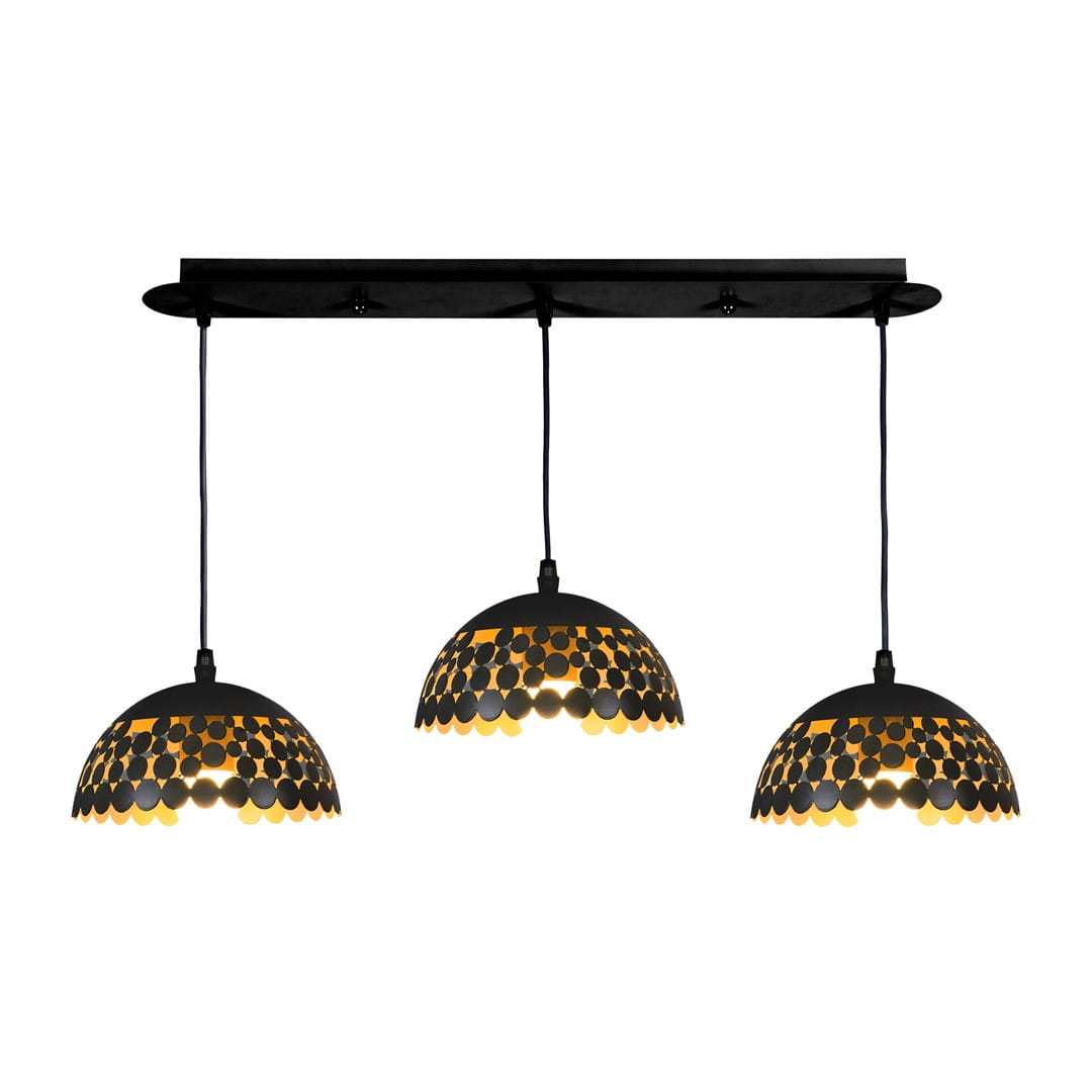 • Lampa sufitowa wisząca, z trzema źródłami światła, czarno-złota ML6136