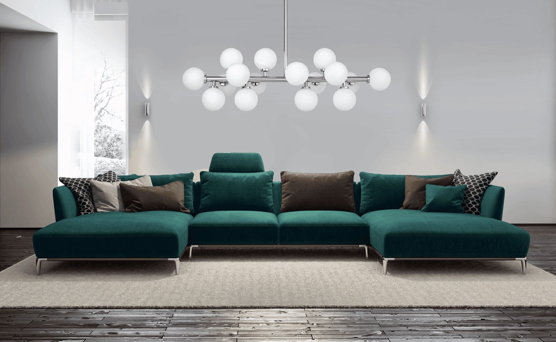 - Mnogość 16 śnieżnobiałych, matowych kloszy zapewnia świetne oświetlenie pomieszczenia