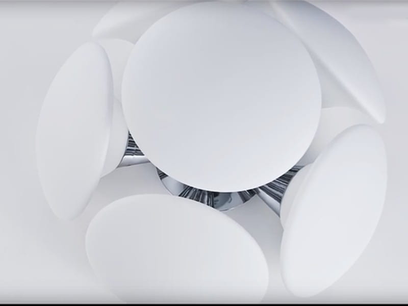 W centrum lampy znajduje się niewielka kula, do której zamontowano sześć kielichów ze srebrzystego metalu. Każdy z nich od zewnątrz jest osłonięty mlecznobiałym szkłem, dzięki czemu lampa daje przyjemne dla wzroku światło rozproszone. Całość jest niezmiernie dekoracyjna i ciekawa wizualnie.