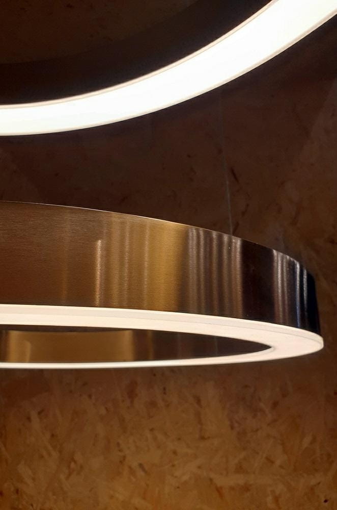 Lampa Ring 60 wykonana została ze stali nierdzewnej w kolorze złotym. Osłona klosza zrobiona z mlecznego tworzywa sztucznego. Okrągły kształt, oraz źródło światła LED zapewniają optymalne oświetlenie pomieszczenia. Lampa sprzedawana wraz ze źródłem światła. Zobacz pozostałe rozmiary lampy Ring.