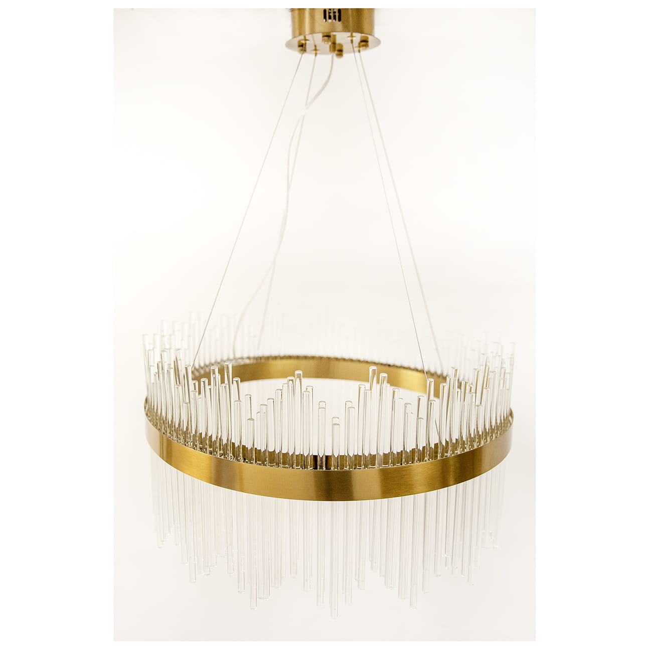 Royal Crystal to elegancki Żyrandol ze zintegrowanym źródłem światła LED 76W skierowanym w dół i górę. Metalowa, złota konstrukcja uwieńczona słupkami kryształów niczym podwójna korona tworzy wytworny kształt. Całość będzie idealnym rozwiązaniem do nowoczesnych wnętrz jak i do wnętrz w stylu glamour.