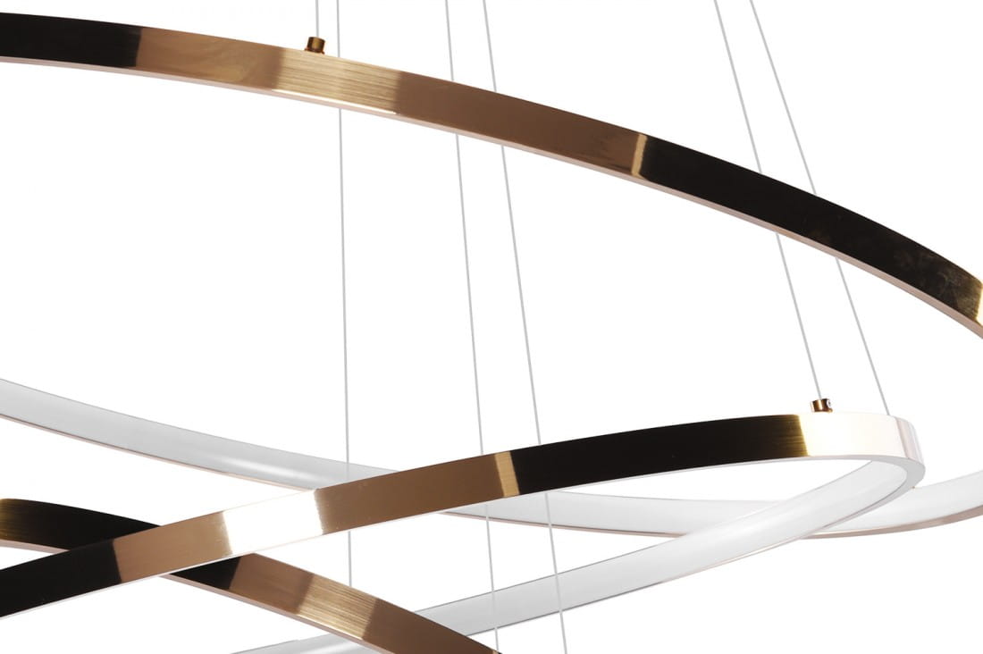 Ciekawa, oryginalna i przyciągająca wzrok lampa WHEEL 3 DIMM, składa się z trzech okręgów o różnej średnicy, które wzajemnie się przeplatają, dając intrygujące efekty wizualne, o wielkim walorze dekoracyjnym.