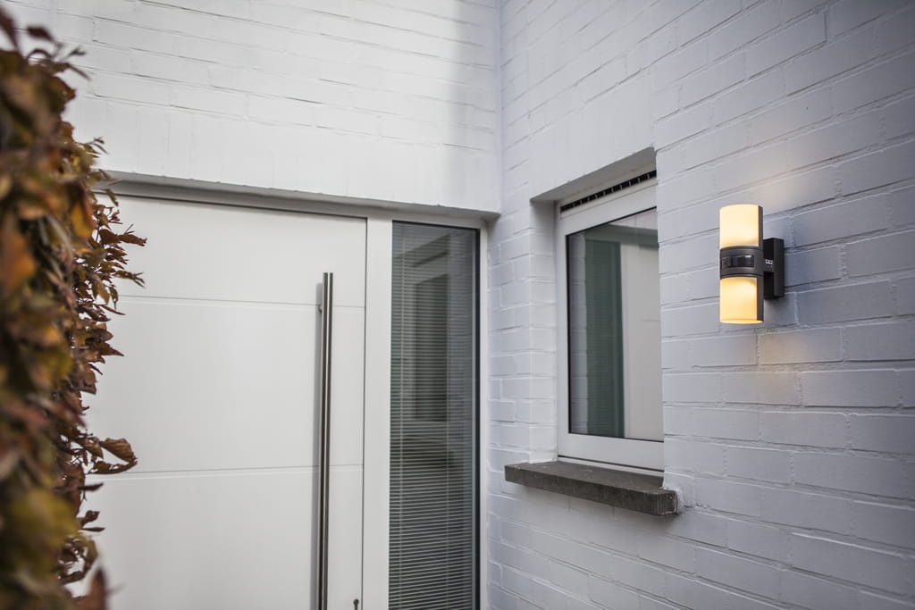 Antracytowa aluminiowa obudowa i mleczny biały klosz. Dwie ruchome głowice oferują możliwość obrotu, co daje przyjemny blask na zewnętrznej ścianie lub przedni rozproszony strumień światła. Występuje również w wersji z czujnikiem ruchu.