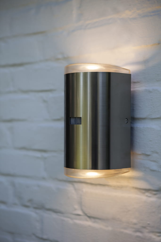 Okrągłe światło góra / dół ze stali nierdzewnej z dyskretną świecącą częścią po obu stronach. Wbudowany czujnik ruchu PIR jest bardzo elegancki i ma duży zasięg wykrywania.
