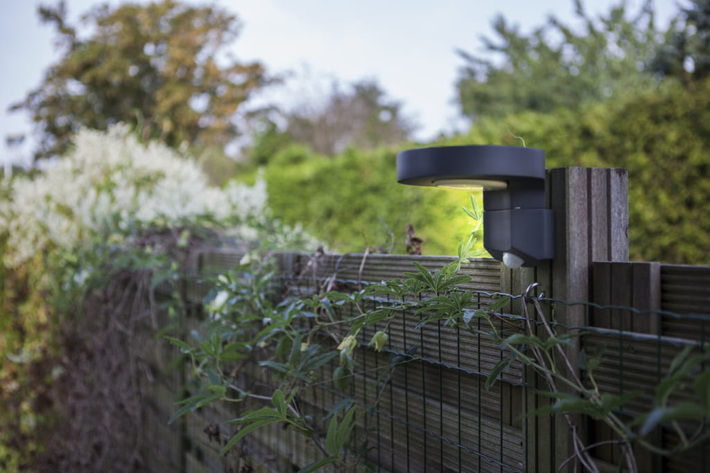 Pomysłowo zaprojektowany kinkiet słoneczny z doskonale zintegrowanym panelem słonecznym. Gotowy do uchwycenia pełnego światła słonecznego. Ruchoma głowica skieruje wiązkę światła na pożądane miejsce. W zestawie czujnik ruchu PIR, który zapewnia moc pełnego światła za każdym razem, gdy ktoś przechodzi.