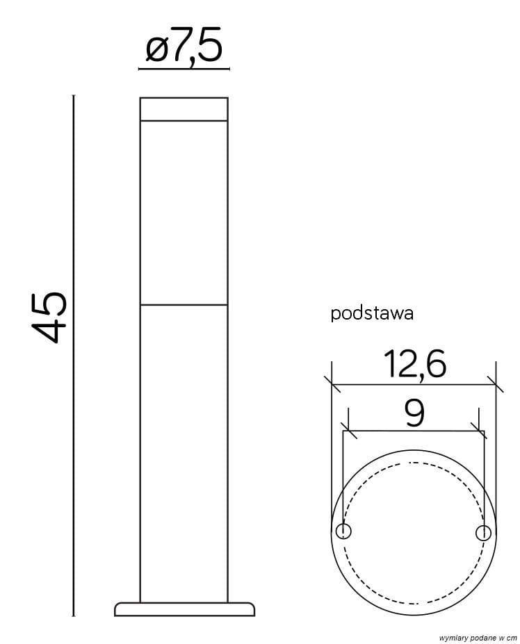 Oprawa ogrodowa INOX ST 022-450 BL czarna SU-MA