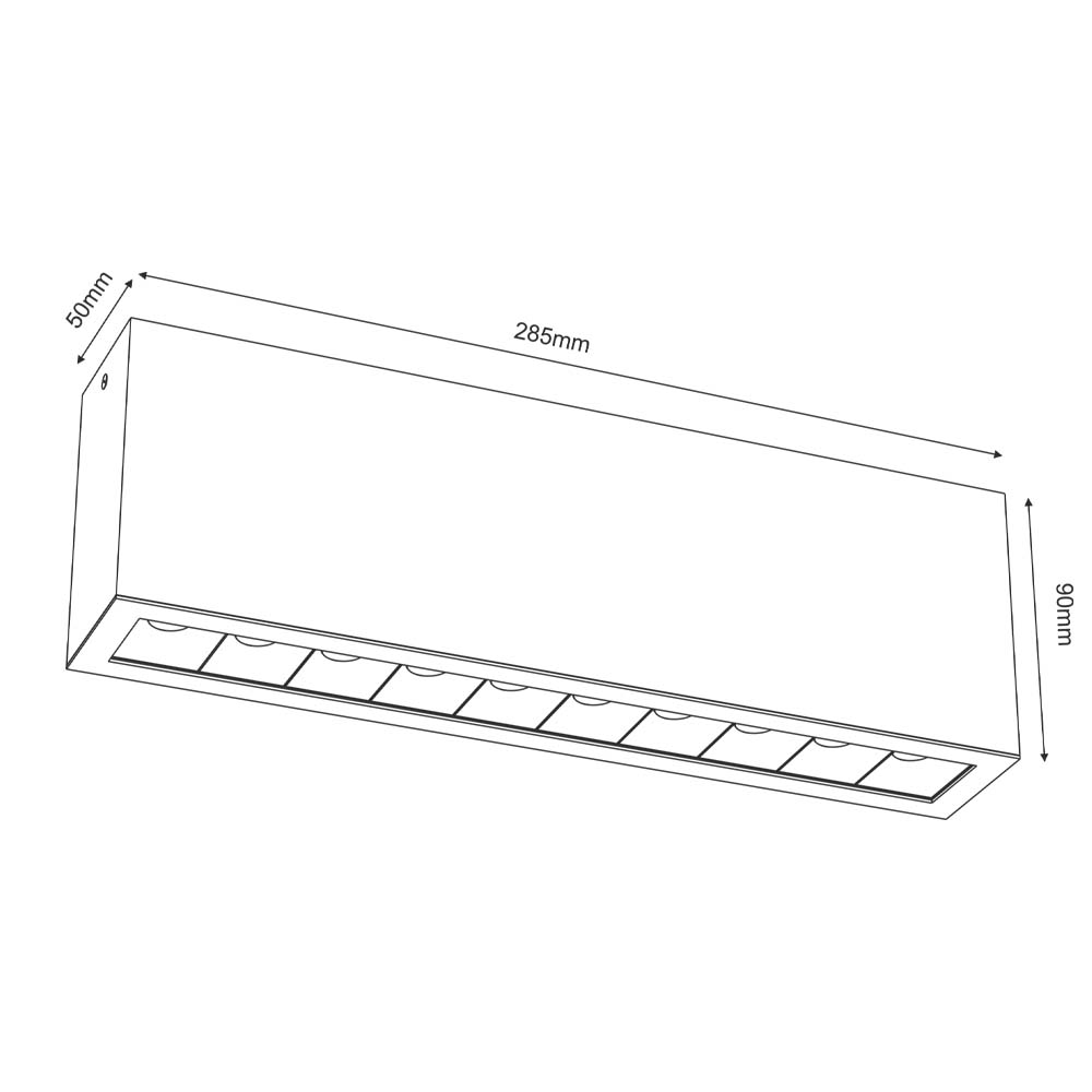 Lampa natynkowa LED w całości wypełniona czarnymi odbłyśnikami z diodami LED. Elegancka ramka wykonana jest z białego lub czarnego aluminium. Oprawę można wykorzystać do oświetlenia ogólnego. Użyte diody LED są wydajne i gwarantują wysokie odwzorowanie barw, a zagłębienie ich i lekkie cofnięcie w oprawie z użyciem czarnych odbłyśników pozwoliło praktycznie wyeliminować olśnienie.