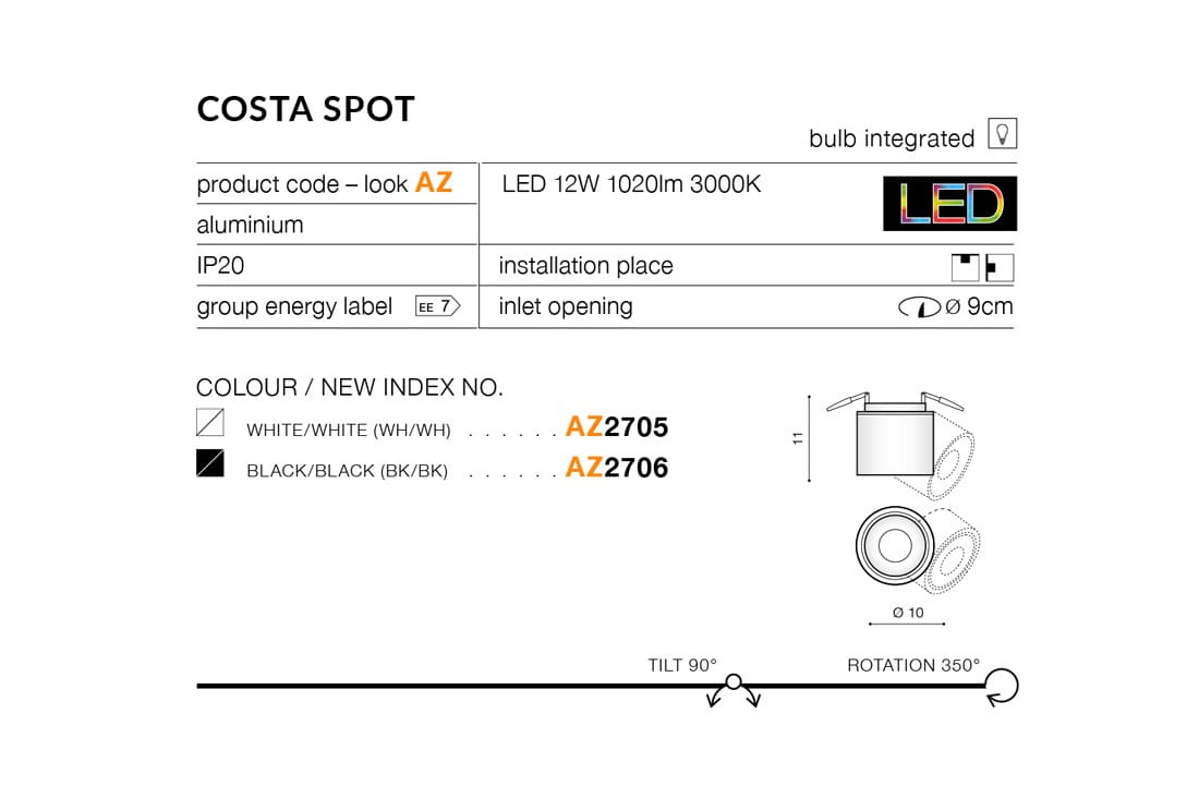 Oprawa sufitowa COSTA SPOT biała AZZARDO