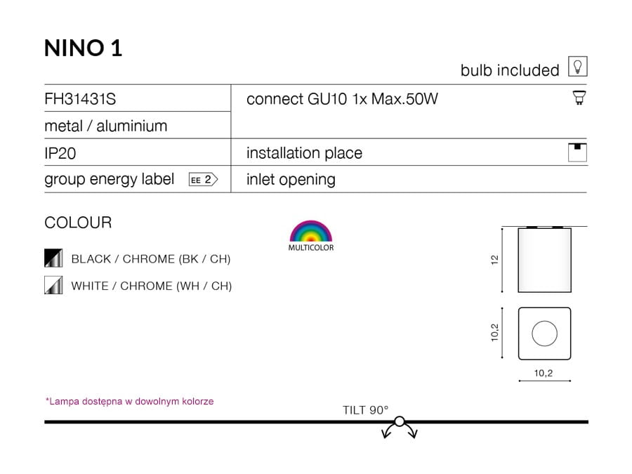 Oprawa sufitowa NINO 1 biała/aluminium AZZARDO