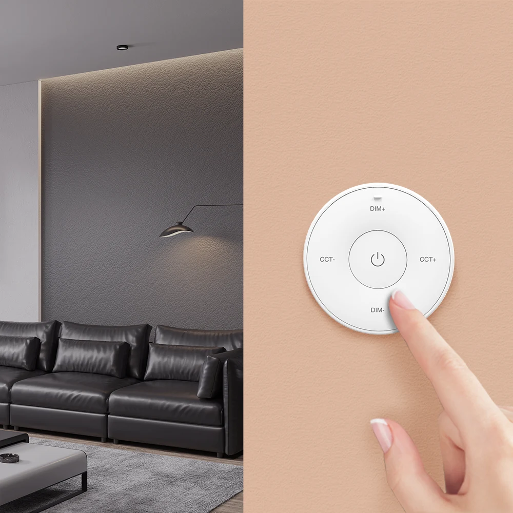 1-strefowy pilot K2S. Umożliwia zmianę temperatury barwowej oraz jasności przypisanych urządzeń. Montowany magnetycznie.