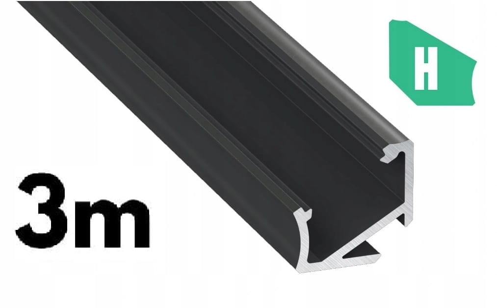 Profil aluminiowy do TAŚM LED typ H czarny 3m Lumines