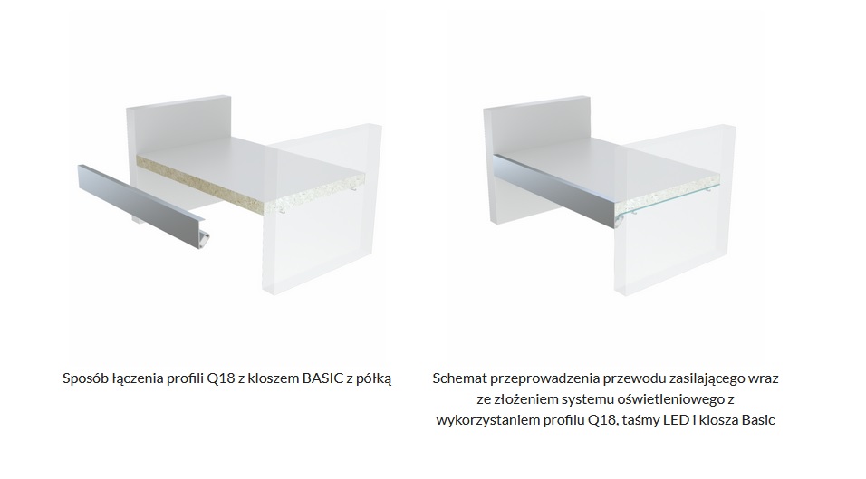 Profil aluminiowy Q18 LUMINES profil kątowy 45° – oświetlenie szaf, blatów . Przystosowany do montażu wzdłuż blatów o grubości 18 mm. Taśmy LED z naszej oferty, idealnie nadają się do zamontowania w Profilu Q marki LUMINES.