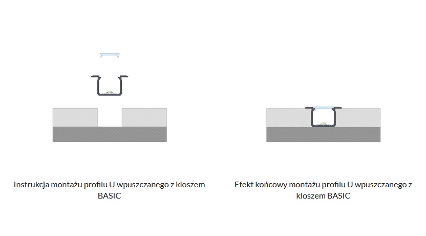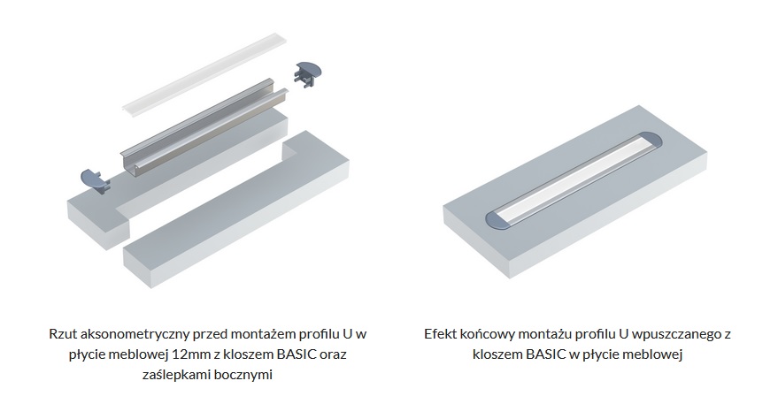 Profil U LED wpuszczany o wysokości dostosowanej do standardowej płyty GK lub płyty meblowej 12mm. Pozwala na szybki montaż wpuszczany bez koniecznego wykończenia gładzią szpachlową. Taśmy LED z naszej oferty, idealnie nadają się do zamontowania w Profilu U marki LUMINES.