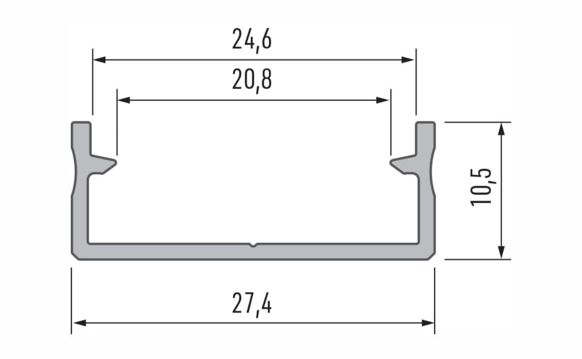 Niski profil aluminiowy Dual to profil nawierzchniowy dla dwóch taśm LED. Profil może być mocowany przy użyciu metalowych uchwytów montażowych.