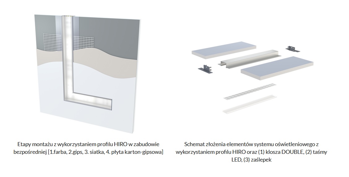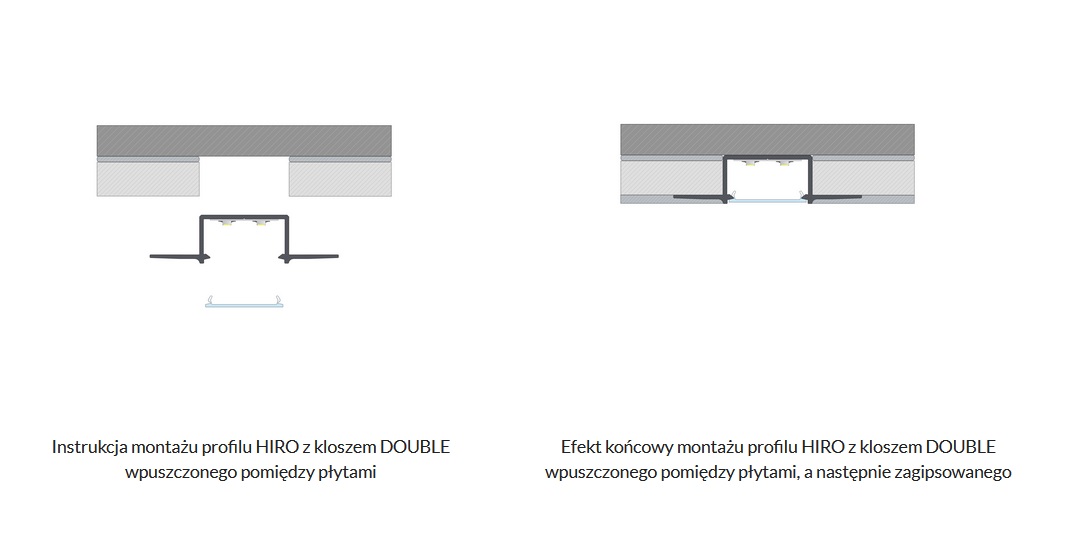 Podwójny Profil LED do montażu i wykończenia gładzią szpachlową zaprojektowany do instalacji dwóch równoległych taśm LED. Dzięki uproszczeniu konstrukcji pozwala na szybki i łatwy montaż. Taśmy LED z naszej oferty, idealnie nadają się do zamontowania w Profilu HIRO marki LUMINES.