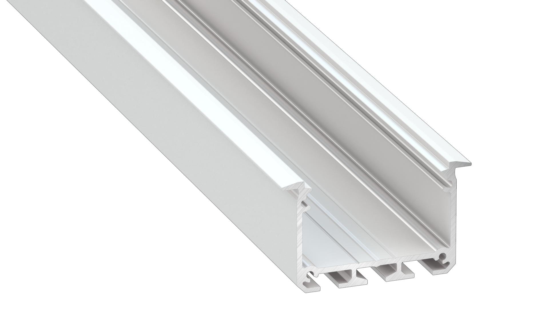 Profil architektoniczny LUMINES typ INSO. Został zaprojektowany do montażu trzech równolegle ułożonych taśm. Dzięki temu, tworząc szerokie źródło światła, świetnie nadaje się do zastosowania w pomieszczeniach biurowych i sklepowych. Świetnie sprawdza się, jako profil architektoniczny montowany w ścianach pomieszczeń w niekonwencjonalny sposób.