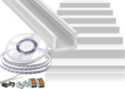 Zestaw oświetleniowy X-1 idealnie nadaje się do dyskretnego oświetlania schodów. Uzyskanie wąskiej linii światła dzięki zastosowaniu profilu X to nie jedyny plus tego produktu. Jego minimalistyczny design pozwala na montaż w miejscach, gdzie nie ma zbyt dużego wyboru, co do zastosowania odpowiedniego oświetlenia. Niewielka wysokość i płaska przesłonka (montowana od góry na wcisk) sprawiają wrażenie bardzo dyskretnej oprawy do taśm i listw LED. Zastosowanie profilu X marki LUMINES, gwarantuje uzyskanie niezwykle wąskiego i przyjemnego strumienia światła.Powłoka anodowana nie przewodzi prądu oraz zabezpiecza profil przed utlenianiem. Do zestawu dodawana jest taśma LED PREMIUM o mocy 4,8W/m. Nadaje ona niesamowity efekt przy oświetlaniu pomieszczeń. Charakteryzuje się szerokim kątem rozproszenia światła (120 stopni) oraz bezpiecznym napięciem zasilania 12V DC.
