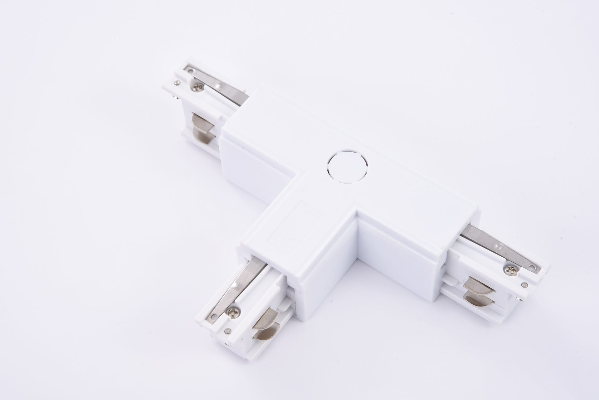 ZŁĄCZE T LEWE DO SZYNOPRZEWODU TRACK 3 LINE T LEFT o kształcie litery T, pozwala na bezpieczne podpięcie aż trzech szynoprzewodów, dla których spełnia funkcję zasilania.